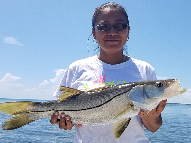 Caye Caulker has some great snook fishing. We use clouser and poppers flies, as well as live bait. You can view some of the snook we caught here.